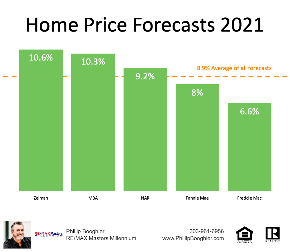 Other experts remain optimistic about home prices, too. The graph below highlights 2021 home price forecasts from multiple industry leaders: